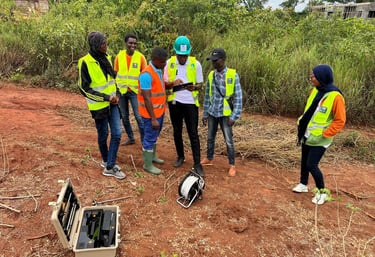 Récemment, nos experts ont assuré : L'encadrement technique des étudiants lors d'une étude géologique à Mayo-Badji en 2023. Une formation pointue pour des stagiaires sur l'utilisation du résistivimètre pour la prospection géophysique en 2022. * Des visites de terrain pédagogiques, comme celle de la station d'épuration d'eau de Meiganga en 2022.